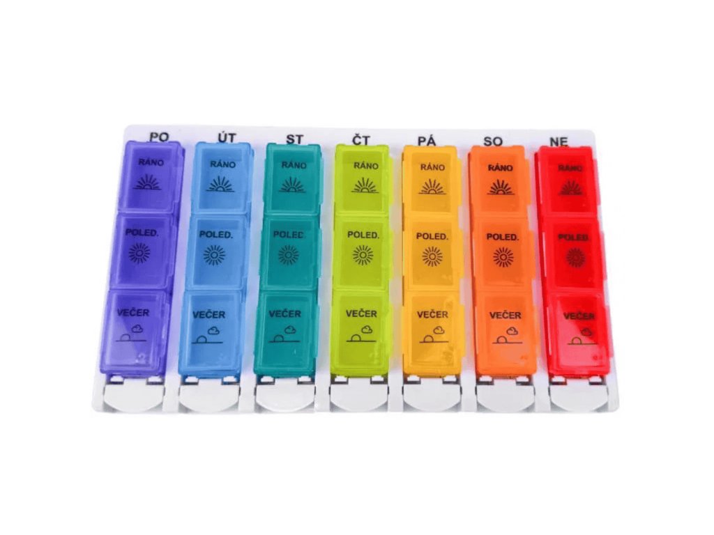 Dávkovač léků na 7 dní – 21 přihrádek je ideálním řešením pro každodenní přehled v medikaci. Každý den je rozdělen do tří částí – ráno / poledne / večer – takže máte dávkování dokonale pod kontrolou. Jednotlivé denní moduly lze navíc vyjmout a používat samostatně, což je skvělé na cestování, do práce nebo do kabelky.