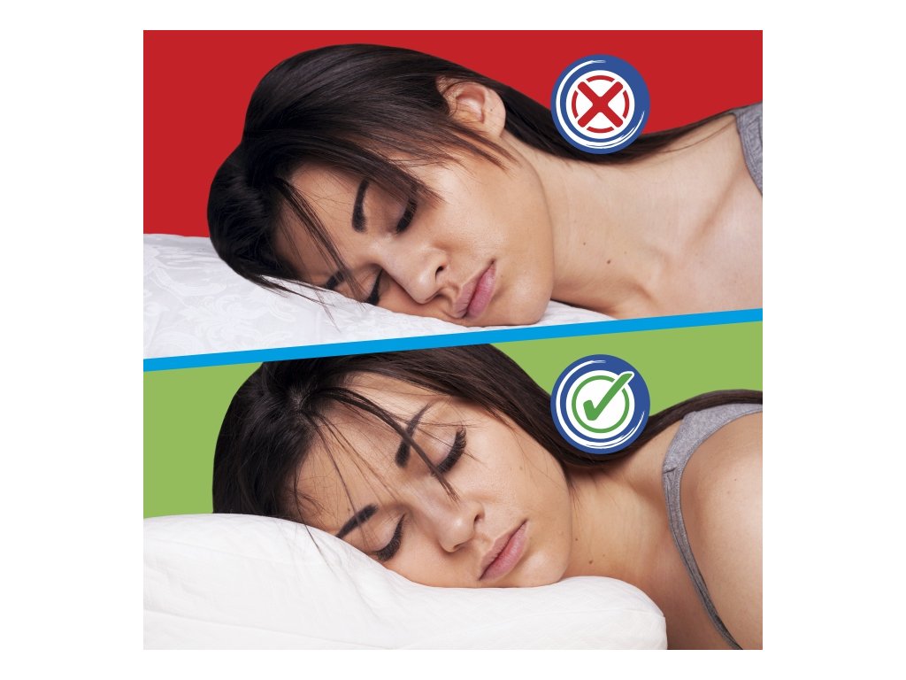 - Při ležení na boku veďte tvář do výřezu a hlavu do centrální prohlubně