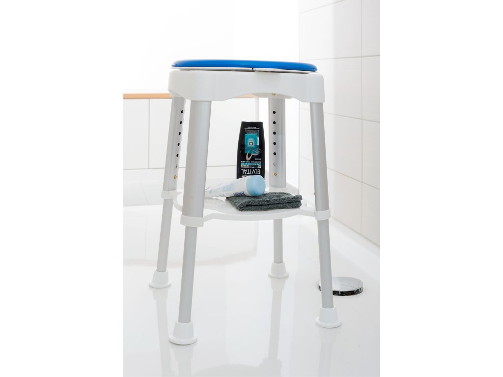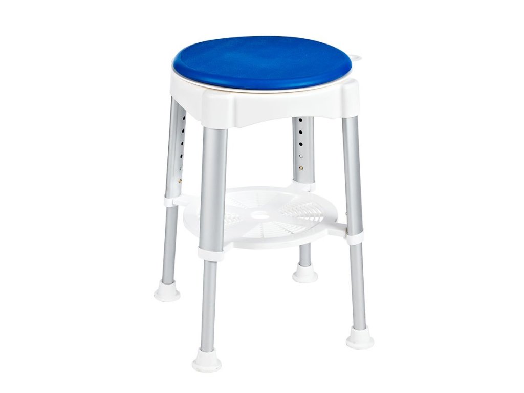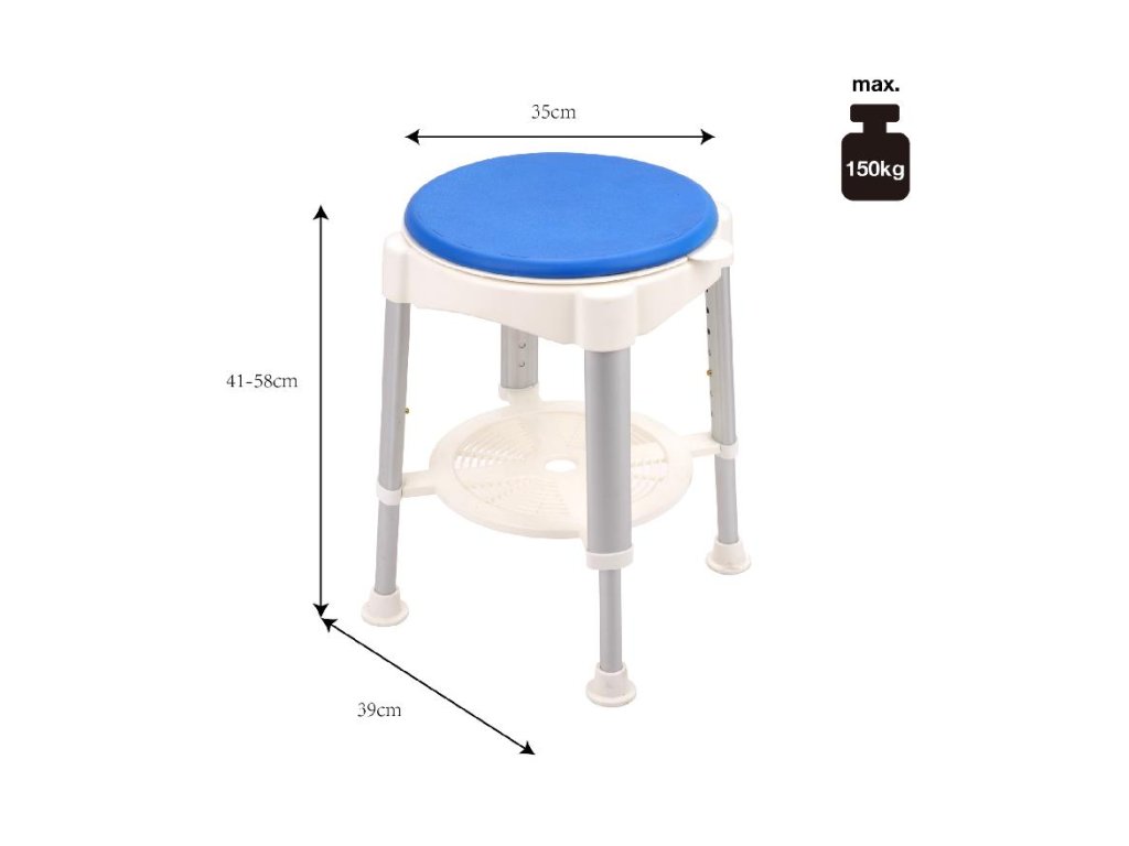 Otočná stolička do sprchy je praktická pomůcka, která přináší maximální pohodlí a bezpečnost při sprchování. Díky otočnému sedáku se můžete snadno pohybovat bez nutnosti vstávat, což ocení senioři i osoby s omezenou pohyblivostí. Výšku lze nastavit v rozmezí 42–58 cm, a to až v 7 polohách. Protiskluzové nožičky zajišťují stabilitu na mokrém povrchu a praktická polička umožňuje odložit sprchové prostředky.